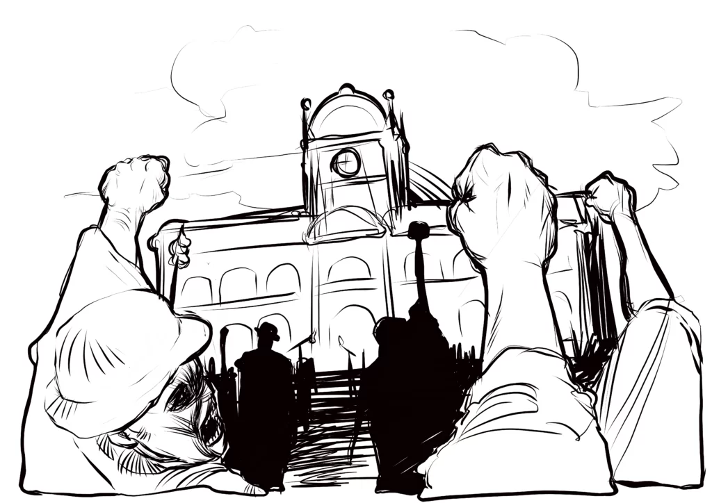 Se reunieron entonces en un lugar llamado Cabildo. Éste se ocupaba en esa época de cuidar la ciudad. Ese día algunas personas se reunieron en la plaza que esta frente al Cabildo para ver qué iba a suceder.